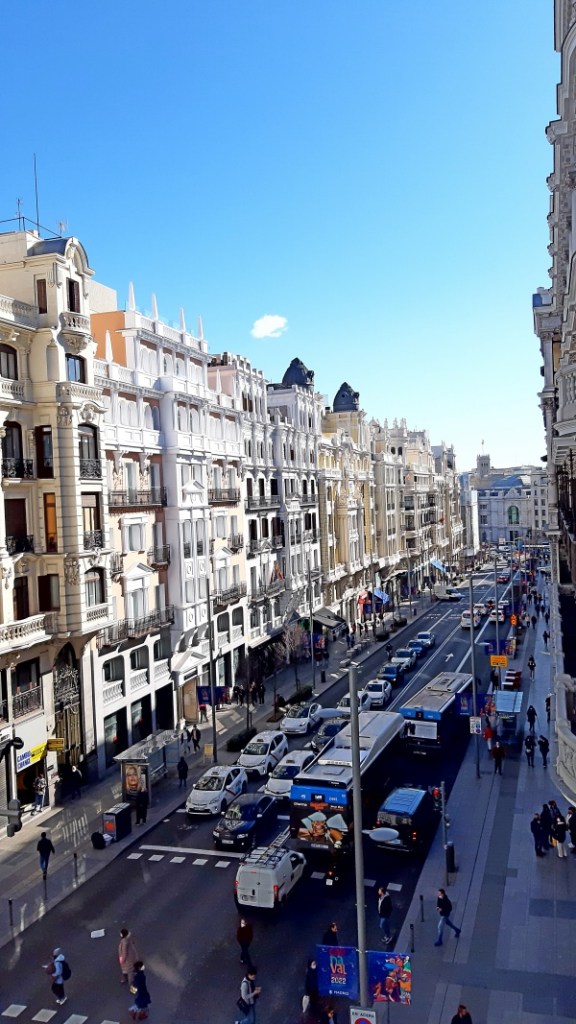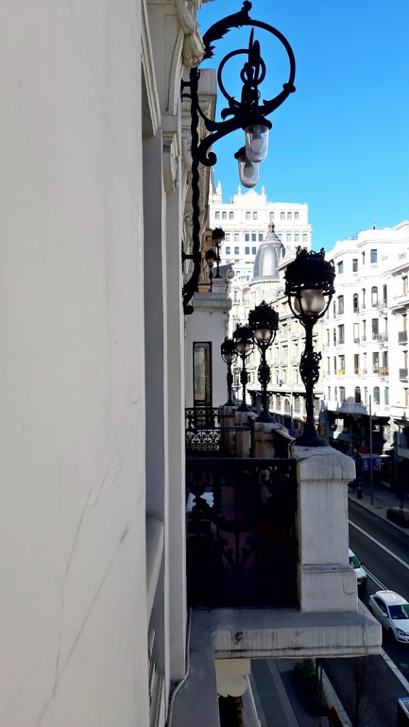 Así fue transcurriendo el tiempo de mi estancia. Y estas imágenes que ahora rememoro me trasladan una y otra vez a ese lugar. Recuerdo, como si fuera ahora mismo, mi sensación cuando se abrieron las ventanas del balcón y me asomé desde lo alto a la majestuosa calle Gran Vía. Retornaron de golpe a mi mente esas inolvidables imágenes de principio del S.XX, que tantas veces he visto en postales y fotografías de la época.
