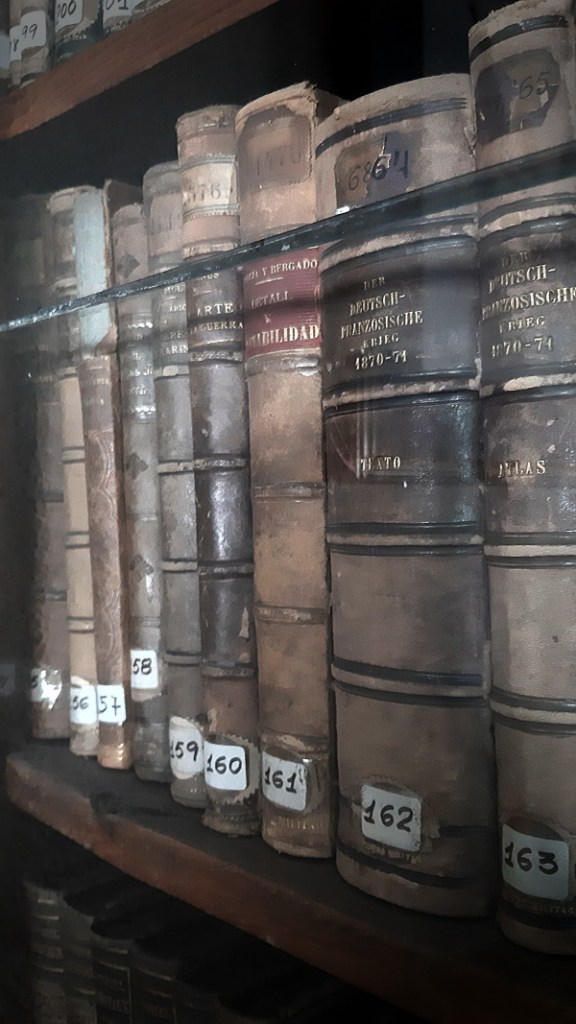 Pero hablemos de su historia. El edifico se crea como «Ateneo Militar» en 1871 y desde el principio se especifica que la principal característica de este centro debía ser la formación cultural y , como base de ella, la lectura. Por ello se crea una biblioteca compuesta por una gran sala para la consulta y lectura de sus libros.