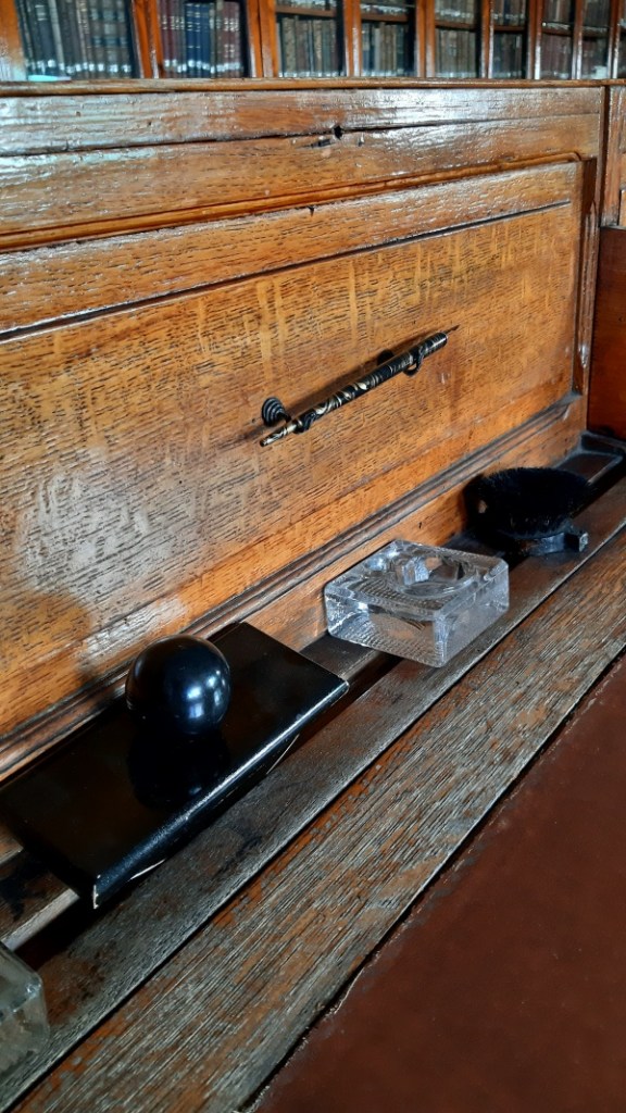 Después de quedar deslumbrada ante la magnitud de las salas y la excelente conservación de muchos de los elementos arquitectónicos y decorativos de este lugar, así como del mobiliario original, ascendimos por su preciosa escalera a la tercera planta donde me esperaba una de las bibliotecas más bonitas que he tenido el gusto de conocer. Sin duda era consciente de que estaba visitando un lugar histórico único, con carisma y personalidad propia.